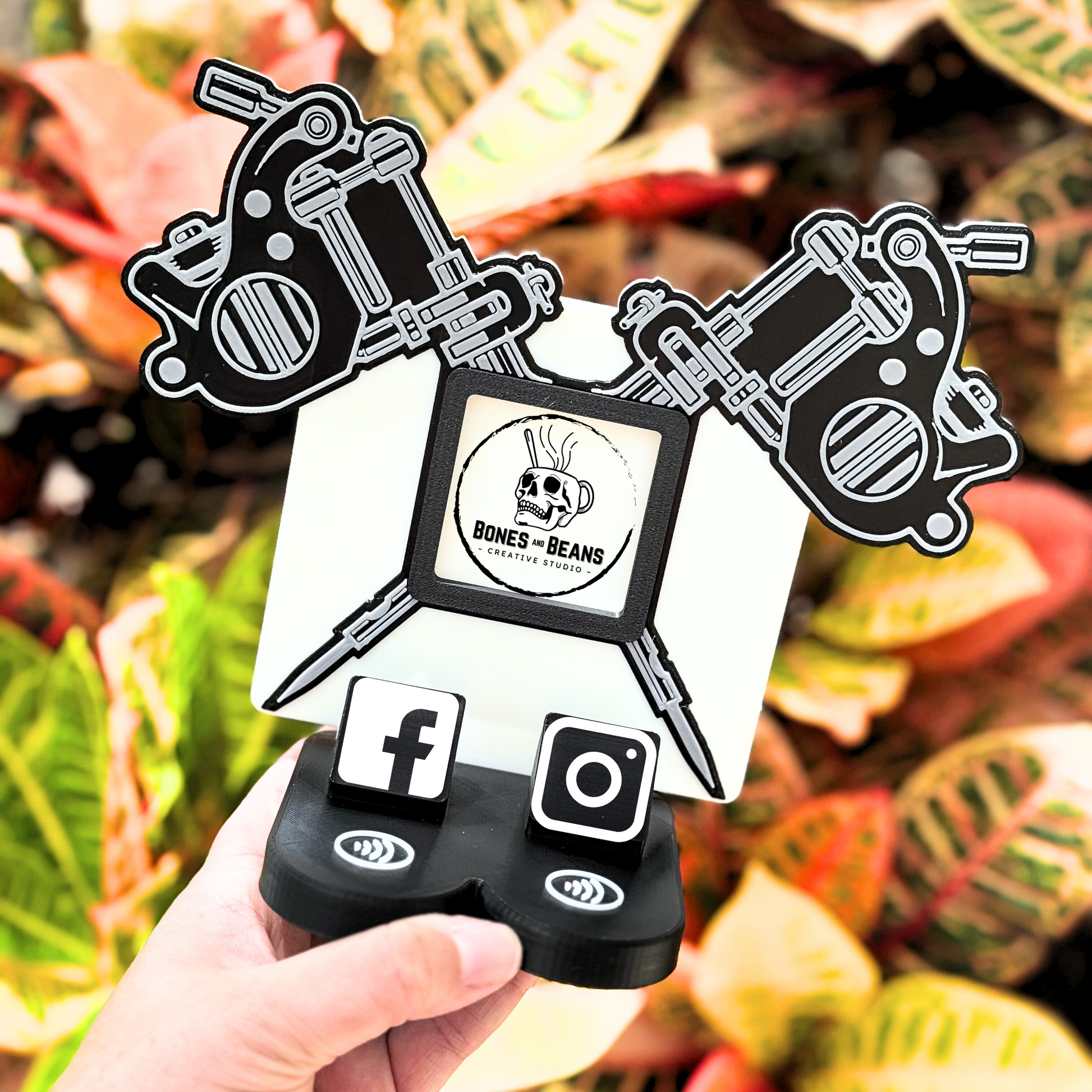 Give your booth or shop counter a bold, custom edge with this eye-catching display sign—perfect for tattoo artists, shops, conventions, and ink-themed events. Built from premium PLA and outfitted with integrated NFC tags, it turns every tap into a seamless customer connection.