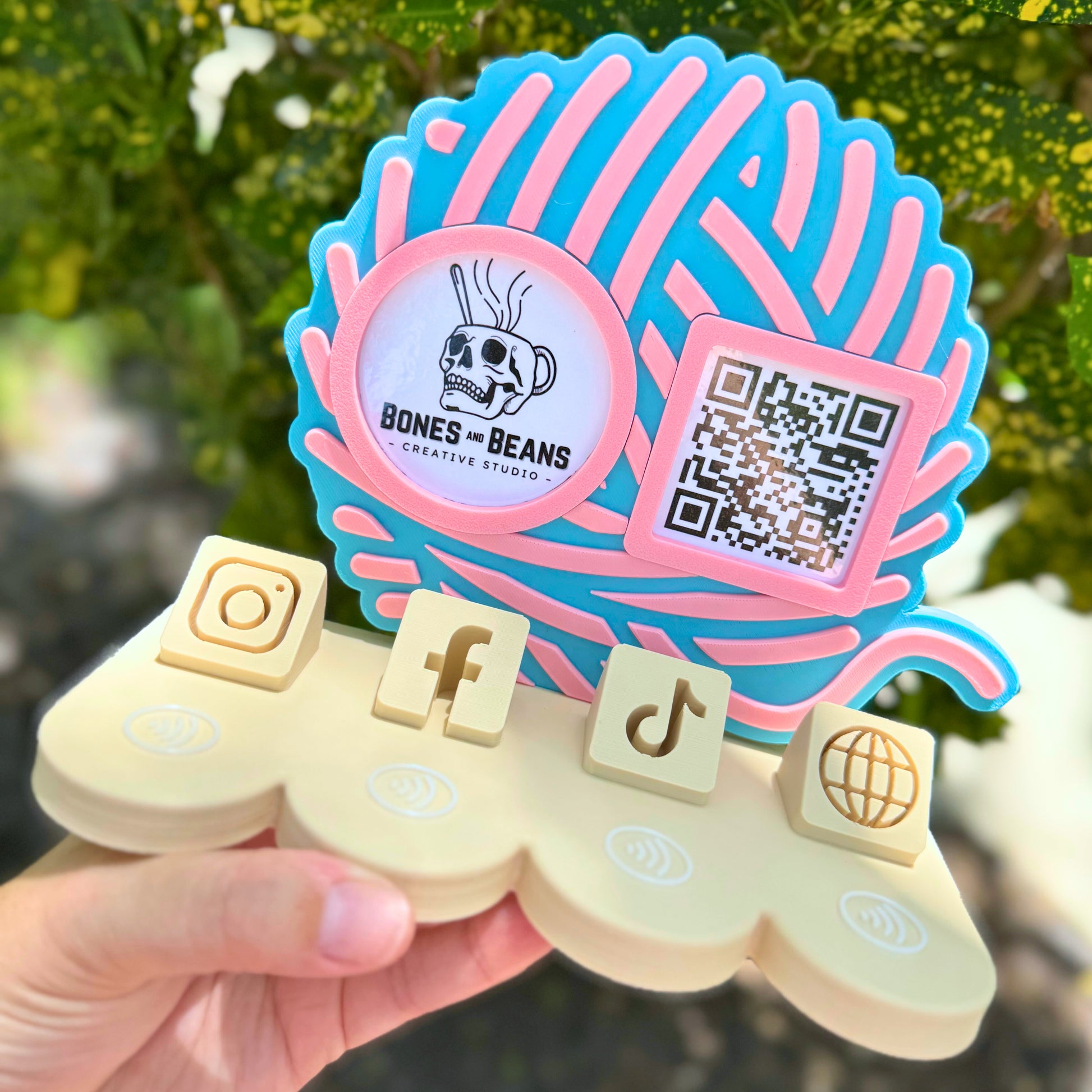 🧶✨ Perfect for crafters, makers, and small businesses! Add a cozy, creative touch to your setup with this custom 3D-printed NFC-enabled vendor display sign shaped like a playful ball of yarn.